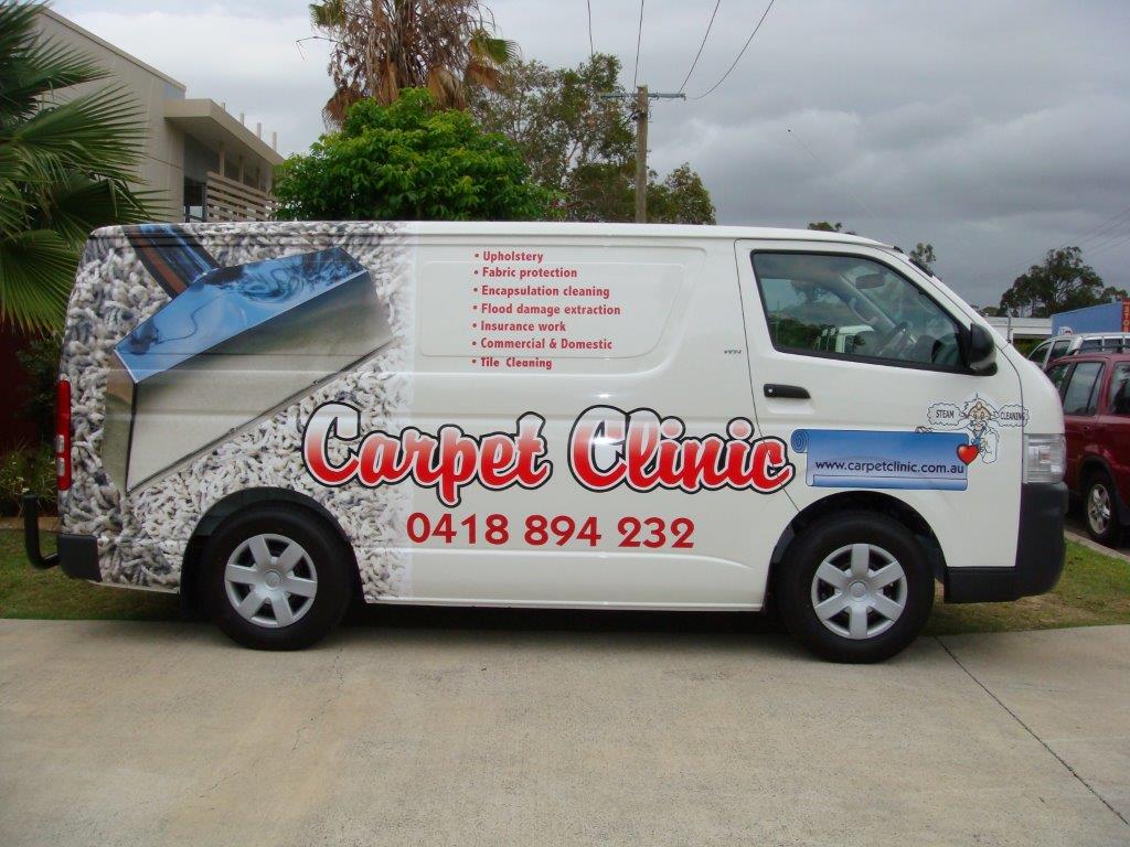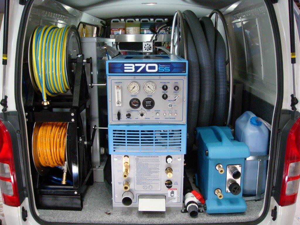 Carpet Clinic operates 4 Hiace vans fitted out with inbuilt state of the art commercial steam cleaning machines.